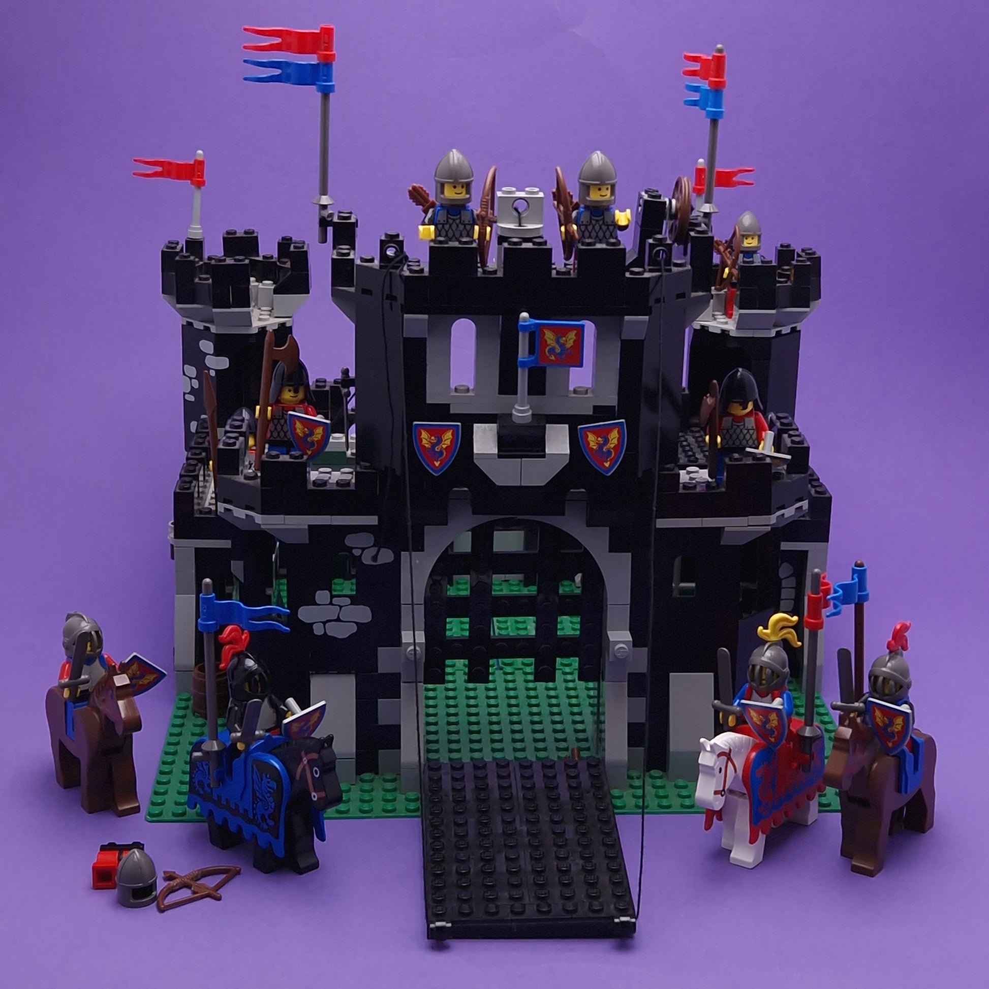 This Lego set comes in a played with condition. Includes the original parts, condition is in good condition, with no broken bits, there is a couple of part missing but very easy to replace, all harder parts included. the flag is not broken. has been on display so a bit of dust. brilliant for its ages with very small scuffs. includes all mini figures and parts you see, but missing figures parts. All original parts. the item shows signs of wear from age and storage, may have scuffs and play wear. Such a beautiful item. No instructions but can be downloaded.