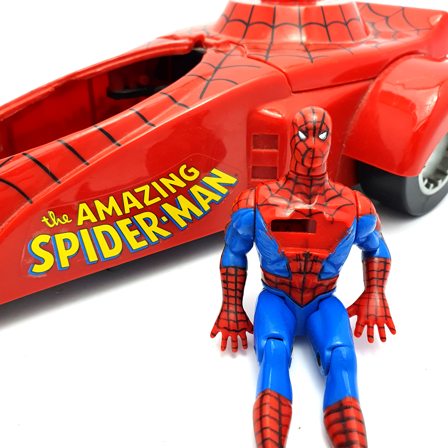 MARVEL SUPERHEROES ☆ SPIDER-MAN DRAGSTER & Figure Vehicle ☆ Marvel Toybiz 90s Original