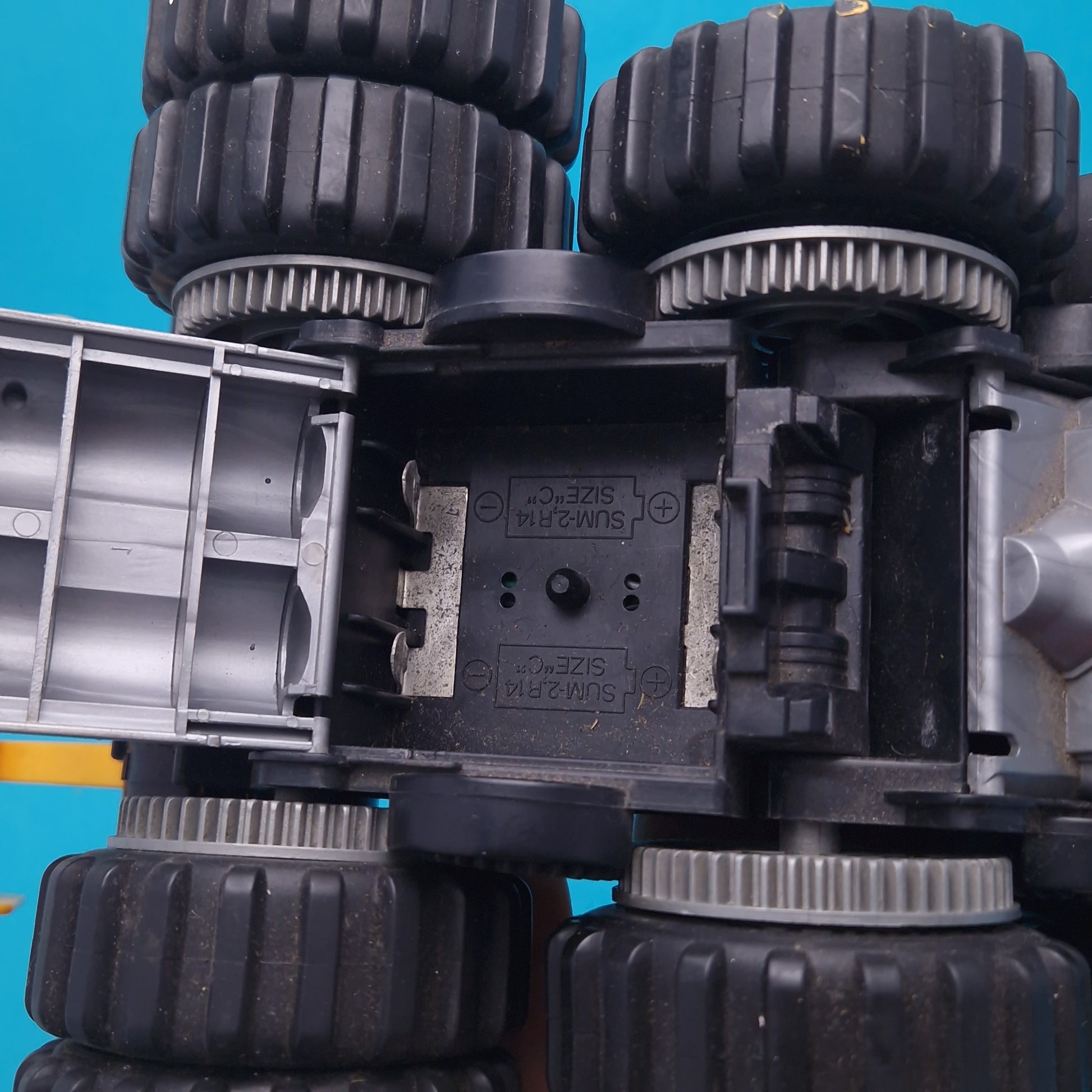 The item comes as seen in the image and the condition of the truck used and preowned, but still in great cosmetic condition, tested and powers up, but does not move along, so must be the cogs have slipped, maybe it can be fixed?, includes all parts you see. Few marks and scratches from play but still overall really nice looking.