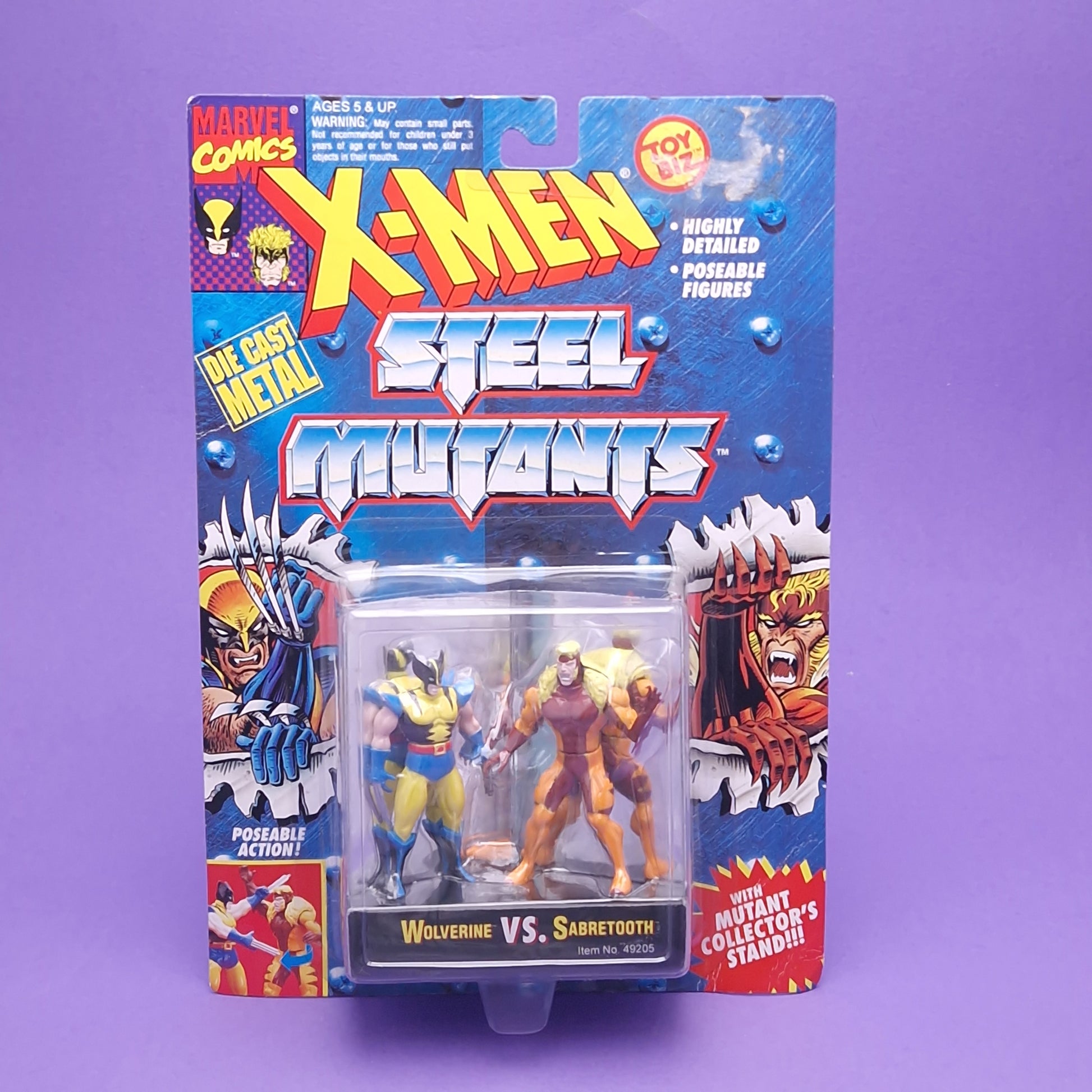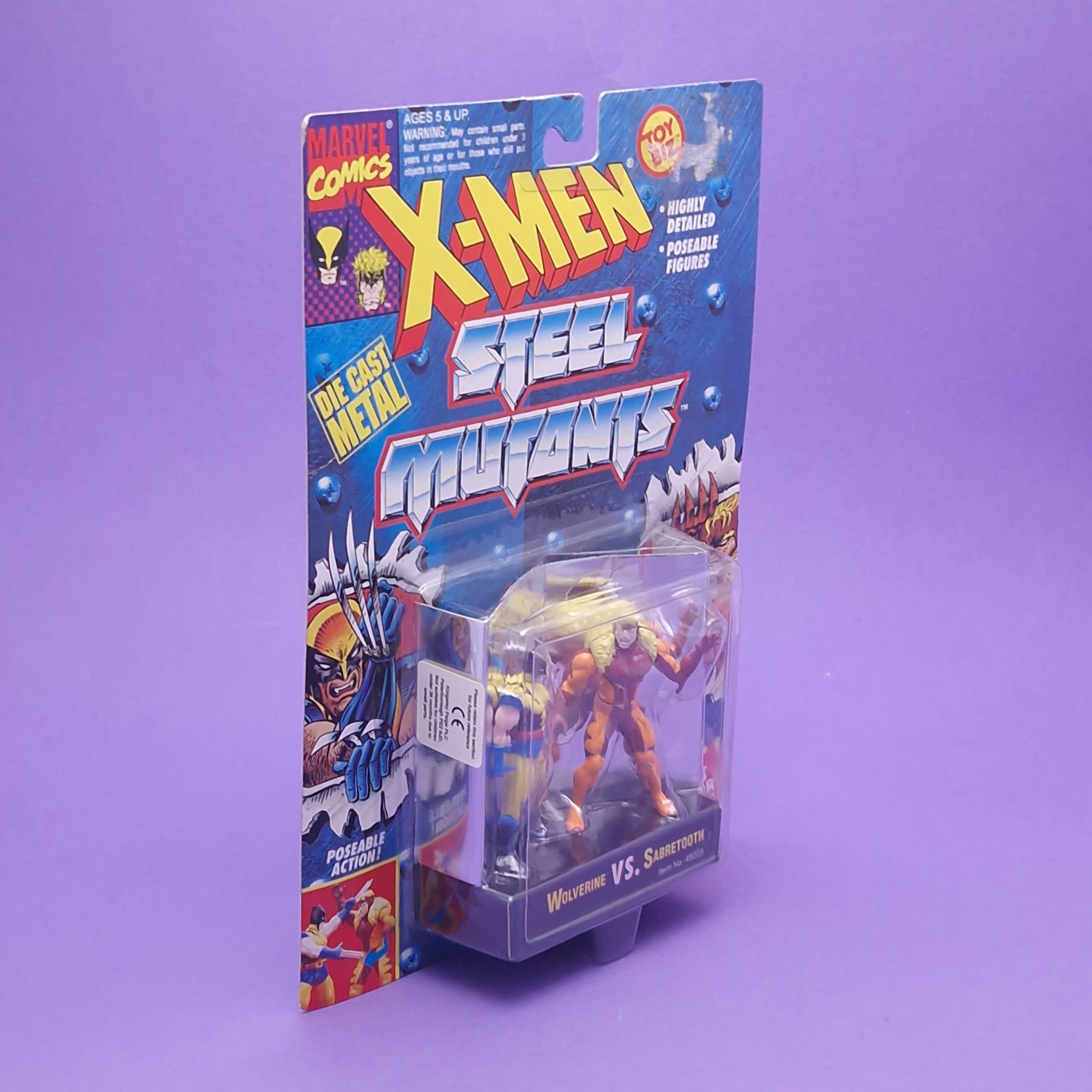 X-MEN STEEL MUTANTS ☆ WOLVERINE Vs SABRETOOTH MARVEL Figure ☆ Diecast Metal Vintage Carded Toybiz 90s
